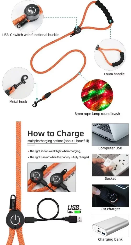& Free ShippingMaterial: polyester rope embroidery ribbon+ LED light+ plastic buckle+USB-C switch